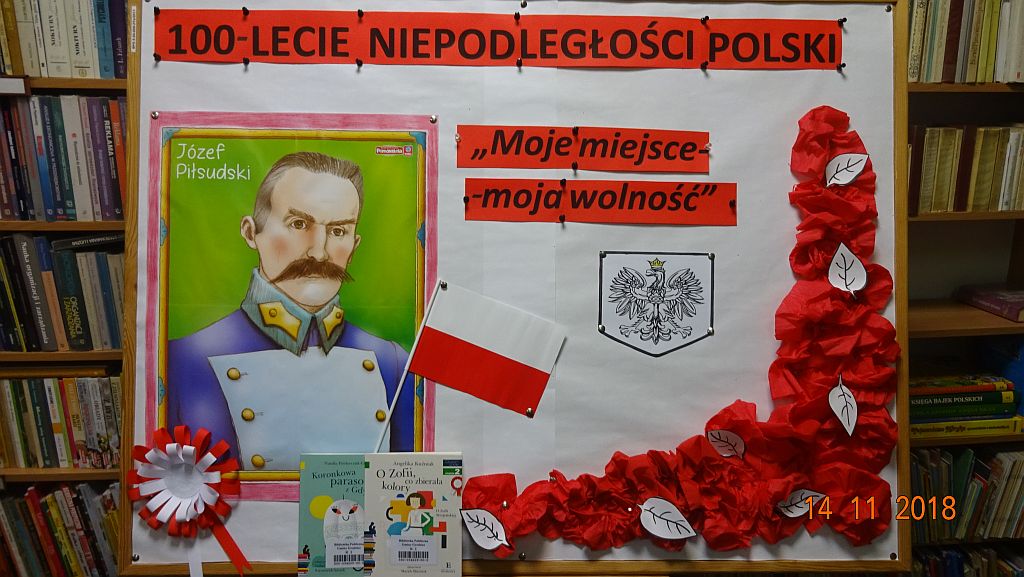 9 listopada 2018 roku, tuż przed obchodami 100. rocznicy odzyskania przez Polskę niepodległości w Bibliotece Publicznej Gminy Grodziec odbyły się warsztaty literacko-plastyczne ph. „Moje miejsce-moja wolność!”. Na zaproszenie kierownik Biblioteki – Katarzyny Gromala mieliśmy przyjemność gościć uczniów klasy III Szkoły Podstawowej im. M. Dąbrowskiej w Grodźcu wraz z wychowawczynią panią Danutą Kusiak. Piękna dekoracja biblioteki, biało-czerwone stroje pracowników oraz dzieci podkreślały wagę zbliżającego się święta.