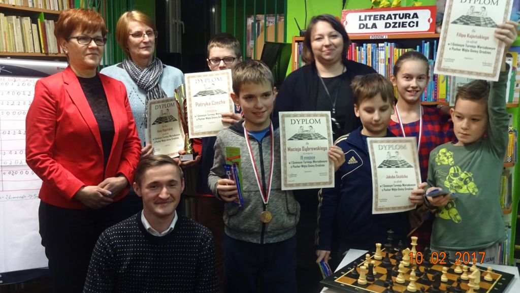 Ostatecznie najlepszym warcabistą okazał się Patryk Czech ze SP w Grodźcu. Wygrał on 23 mecze i zdobył 46 punktów, w ten sposób uzyskując tytuł Mistrza rozgrywek. Drugie miejsce z dorobkiem 45 punktów zajęła Dominika Woźniak ze SP w Królikowie. Przysłowiowym „rzutem na taśmę” podium wywalczył Maciej Dąbrowski ze SP w Grodźcu, pokonując w ostatnim starciu swojego kolegę ze szkoły – Jakuba Goździka.