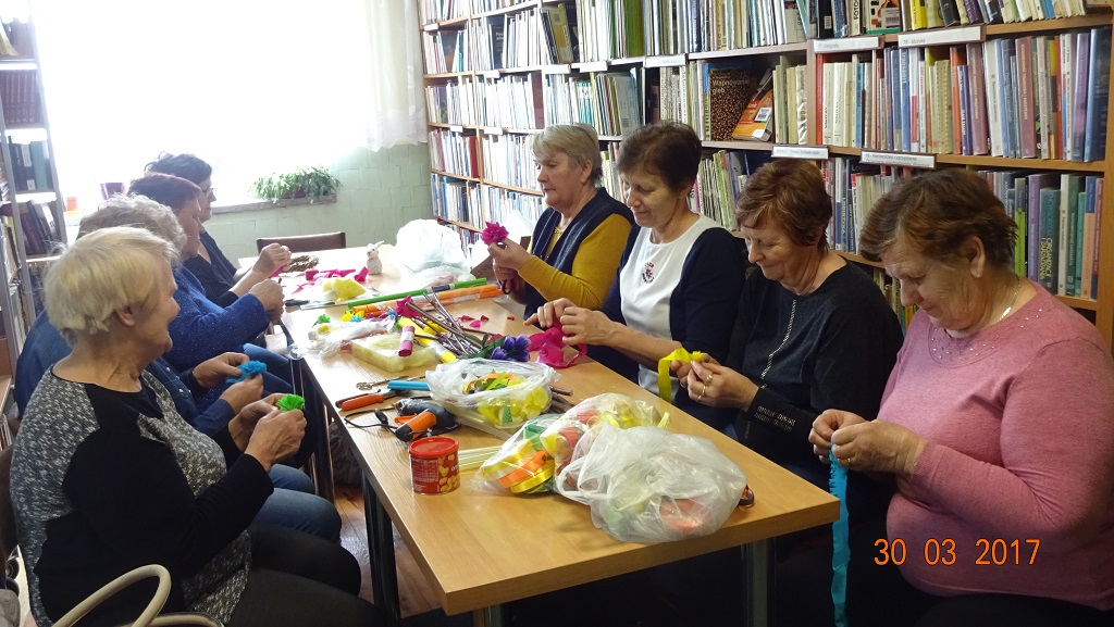 Nawiązując do pięknej tradycji przygotowania palm wielkanocnych Biblioteka Publiczna w Grodźcu 30 marca br. zaprosiła Panie z Klubu Seniorów do udziału w warsztatach pt. „Tradycyjna palma wielkanocna”.