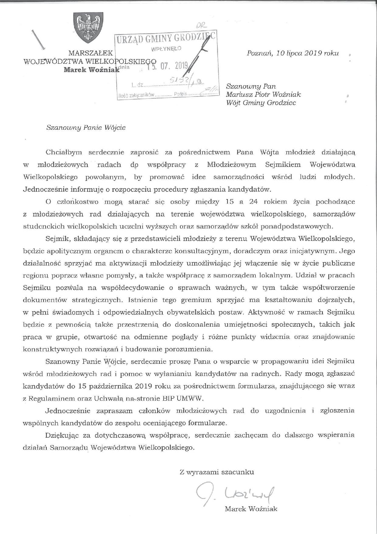 Zaproszenie do współpracy z Młodzieżowym Sejmikiem Województwa Wielkopolskiego